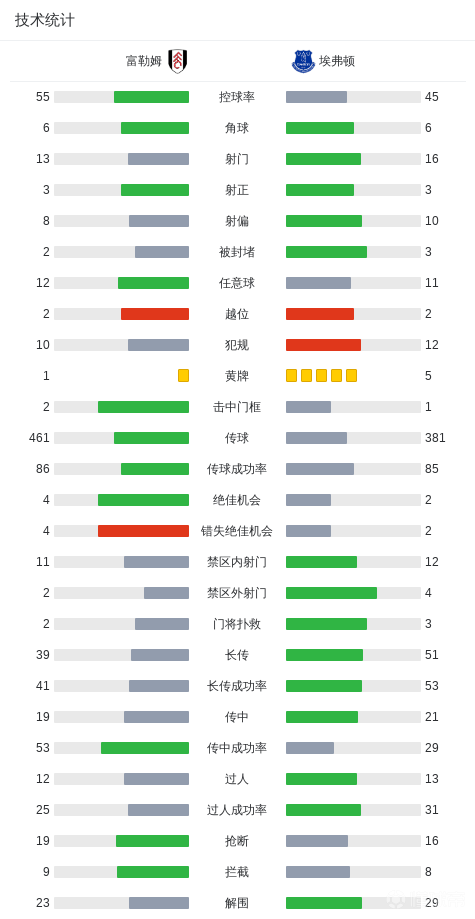 第75分鐘,霍爾中路搶點(diǎn),低射扳平比分,富勒姆1-1埃弗頓