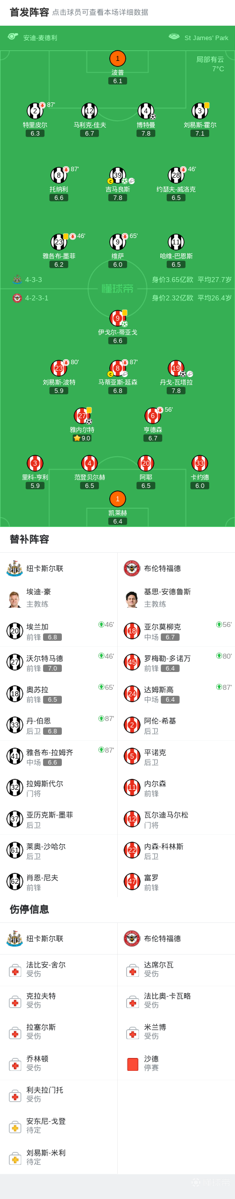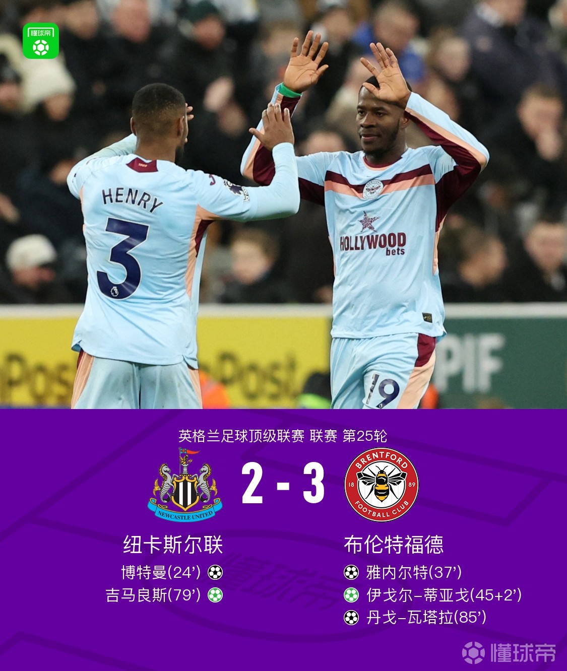 第23分鐘,紐卡率先打破僵局,博特曼頭槌破門(mén),紐卡1-0布倫特福德
