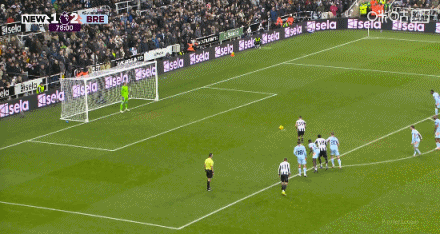 第86分鐘,瓦塔拉勁射破門(mén),幫助球隊(duì)再度領(lǐng)先,紐卡2-3布倫特福德