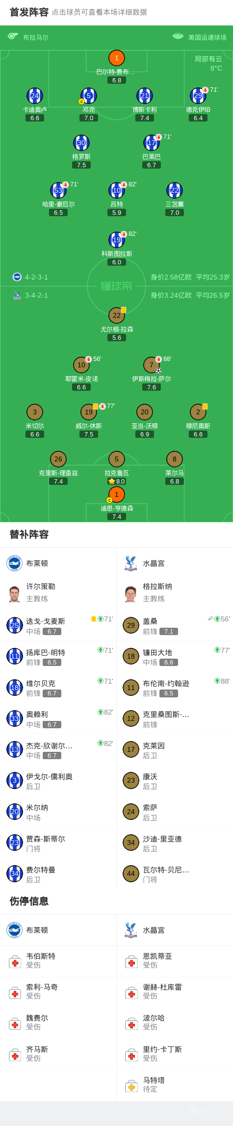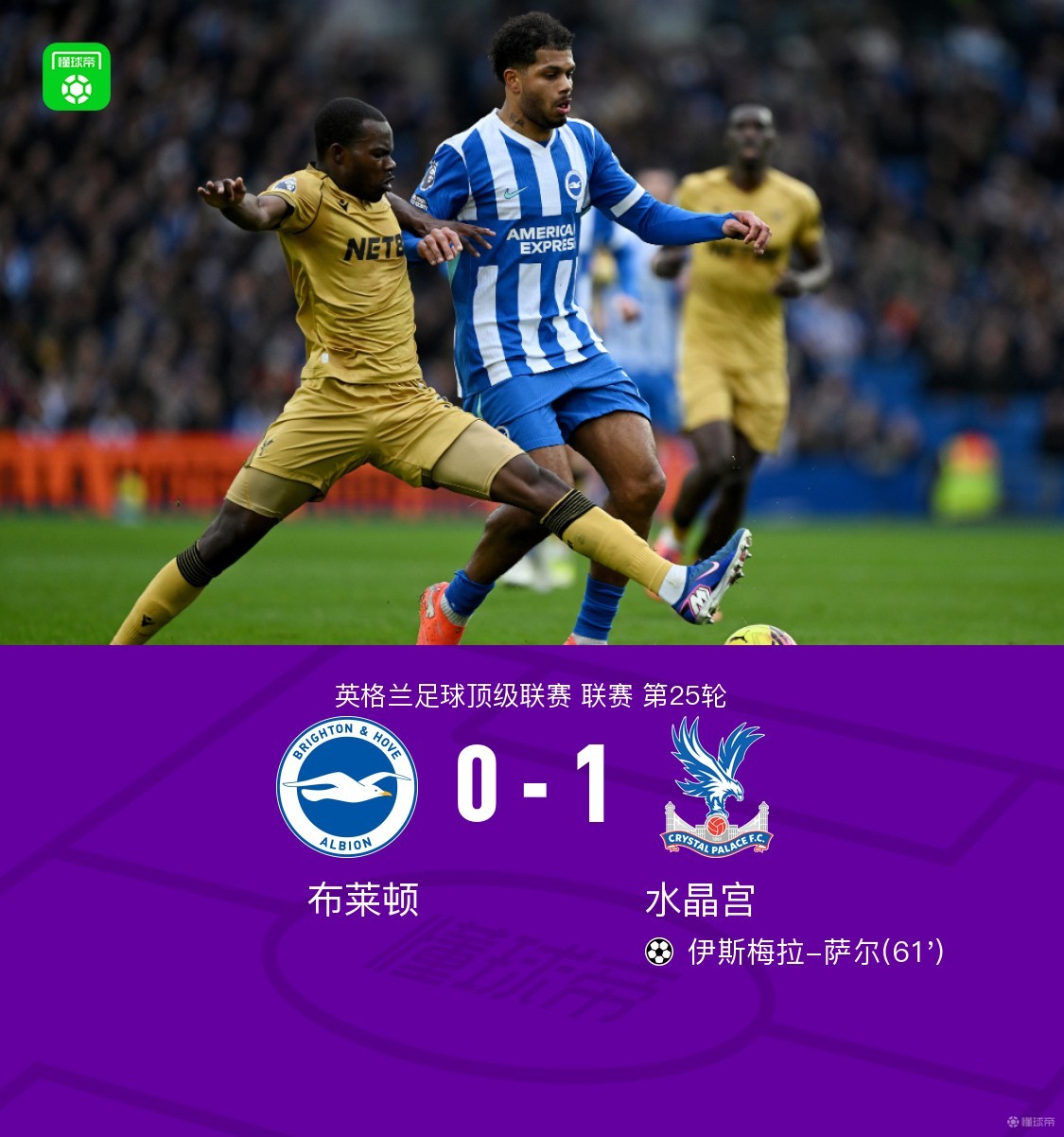 北京時(shí)間2月8日英超聯(lián)賽第25輪,布萊頓主場對陣水晶宮。伊斯梅拉-薩爾推射破門打進(jìn)全場唯一進(jìn)球,尤爾根-拉森造險(xiǎn)。最終,水晶宮1-0客勝布萊頓,取得近13輪首勝。