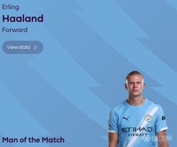 最終經(jīng)過英超官網(wǎng)球迷投票,哈蘭德以65%的得票率當選全場最佳球員。
