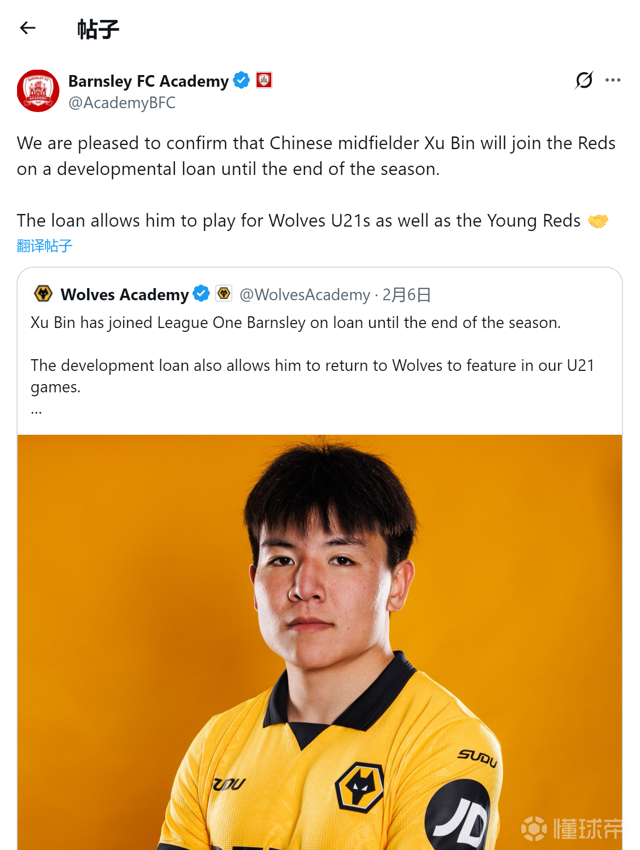 #徐彬租借加盟巴恩斯利# 職業(yè)發(fā)展聯(lián)賽(PDL)由20支第二級(jí)別青訓(xùn)學(xué)院球隊(duì)組成,巴恩斯利U21隊(duì)主要參加該賽事。聯(lián)賽分為南北兩區(qū),每隊(duì)和同區(qū)球隊(duì)進(jìn)行主客兩場(chǎng)比賽、和不同區(qū)球隊(duì)進(jìn)行一場(chǎng)比賽,28輪后按總積分榜排名決定常規(guī)賽冠軍。本賽季,巴恩斯利U21隊(duì)?wèi)?zhàn)績(jī)欠佳,目前3勝5平8負(fù)、進(jìn)28球丟40球,排名第17位。常規(guī)賽還剩余12場(chǎng)比賽。為了促進(jìn)球隊(duì)交流,本賽季新增跨級(jí)別淘汰賽——前八名球隊(duì)將與英超U21聯(lián)賽第17至24名的八支球隊(duì)進(jìn)行淘汰賽,勝者加冕職業(yè)發(fā)展聯(lián)賽冠軍。